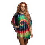 Tüll Umhang lang schwarz mit silbernen Punkten