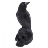 Statue corbeau sur crâne noir, 13x20 cm poly