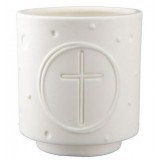 Photophore en porcelaine foi, blanc mat avec croix 6 cm