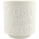 Photophore en porcelaine foi, blanc mat avec slogan 6 cm