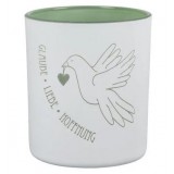 Photophore en porcelaine foi, blanc , vert avec écriture