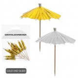 Parapluies de cocktail or et argent, 10 pcs. 2 ass.